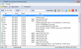 Der Log-Viewer dient zur Anzeige einer Log-Datei, standardmäßig sind alle Log-Dateien des Servers bei der Installation mit dem Log-Viewer verknüpft. Innerhalb des Log-Viewer’s kann man die einzelnen Einträge sortieren, oder diverse Klassen ausblenden. Weiterhin können Einträge nur aus einem bestimmten Zeitraum oder einem bestimmten Text angezeigt werden, dies hilft bei der Fehlersuche sehr.