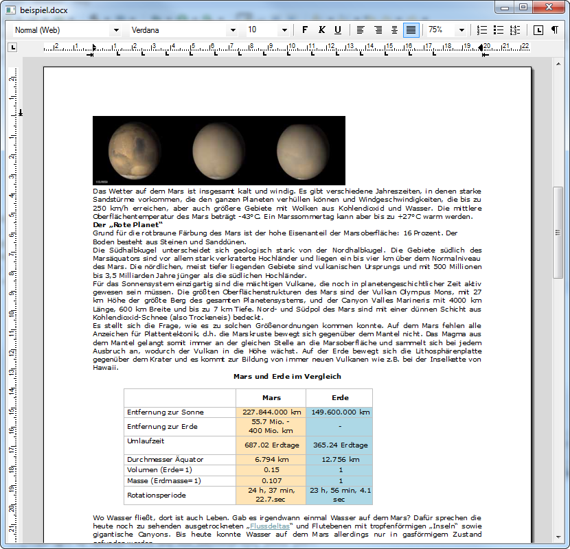 Das funktioniert sogar, ohne dass eine MS-Office Installation vorhanden sein muss (siehe Abb. 1). Desweiteren ist es möglich den Inhalt eines Dokumentes als PDF zu speichern.