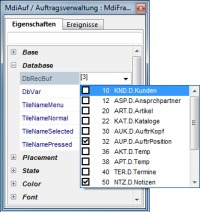 zur Verfügung. In Abhängigkeit der Felder, welche in dem MDI-Fenster bearbeitet werden, muss die dazugehörige Tabelle ausgewählt werden.