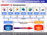 Eine Beschreibung der vectorsoft AG sowie eine Firmenhistorie bilden die Einleitung der Präsentation. Danach werden die technischen Aspekte ausführlich und im jeweiligen Zusammenhang beleuchtet. Beginnend bei der Datenbankstruktur, als Client-Server-System, über die verschiedenen Applikationsschnittstellen werden die Möglichkeiten von CONZEPT 16 übersichtlich dargestellt. Anschließend werden SOA-Service sowie die COM-Schnittstelle ebenfalls erläutert. Eine Schilderung der Datenbankadministration sowie die Kontaktdaten des vectorsoft-Supports runden die Übersicht ab.