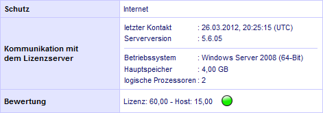 Bei beiden Anfragentypen werden die oben genannten Informationen mit an den Lizenzserver übermittelt. Die jeweils zuletzt übermittelten Daten sind jetzt auch in den Lizenzdetails im Kunden-Center sichtbar. Da ältere Versionen des Datenbankservers diese Daten nicht in allen Fällen übermittelt haben, kann die Anzeige allerdings auch leer sein.