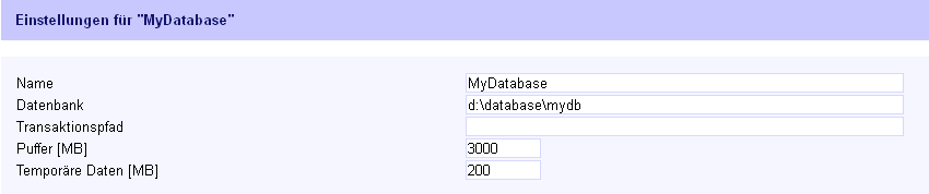 Für ein effizientes Arbeiten ist zusätzlich notwendig, einen ausreichend großen Pufferbereich für die „temporären Daten“ zu reservieren. Übersteigt die Menge an temporären Daten den reservierten Bereich, findet unter Umständen eine Verdrängung der Daten aus dem Cache in die externe Transaktionsdatei (*.trs) statt.