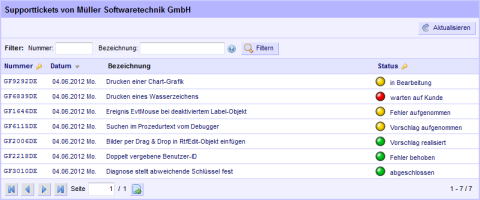 Unter dem neuen Menüpunkt „Supporttickets“ finden Sie eine sortierbare Liste mit Ihren Supportfällen seit dem 1. April 2012.