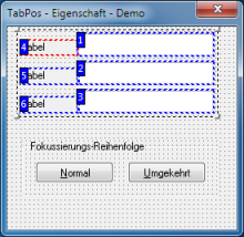 Die Tabulator-Reihenfolge kann auch zur Laufzeit über die Eigenschaft wpTabPos angepasst werden.