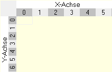 Zur Laufzeit gibt es weiterhin die Möglichkeit einzelne Zellen der Skala, sogenannte Indizes, anzusprechen. Dabei funktionieren die Indizes wie ein Index der Eigenschaft wpScalaLabels. Der Index beginnt bei der ersten Zelle mit dem Wert 0. Dieser Wert erhöht sich von Zelle zu Zelle jeweils um 1, bei der X-Achse von links nach rechts und bei der Y-Achse von oben nach unten (siehe Bild).