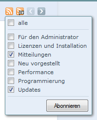Über ein sich öffnendes Menü können Sie die für Sie relevanten Kategorien auswählen. Mit einem Klick auf den Button "Abonnieren" wird der RSS-Feed geöffnet.