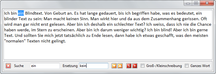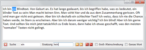 Das Modul übernimmt ab diesem Zeitpunkt sämtliche Logik und Steuerung, die zum Suchen und Ersetzen im RTFEdit-Objekt notwendig ist, zum Beispiel: