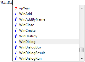 Eine Liste aller Prozedurbefehle und Konstanten wird mit den Tasten <Strg> + <Leerzeichen> geöffnet. In der Liste wird der Text vor der Cursorposition gesucht und entsprechend markiert. Die ausgewählte Zeile wird mit <Enter> übernommen.