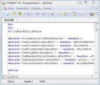 Die kontextsensitive Hilfe zum aktuellen Prozedurbefehl oder zur aktuellen Konstante wird mit <Strg> + <F1> angezeigt. Befindet sich der Cursor auf einem Datenbankfeld oder einem anderen Element der Datenstruktur wird darauf in der Datenbankinfo positioniert.
