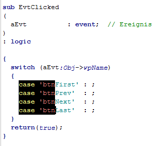 Zwischen den geöffneten Prozeduren kann mit den Tastenkombinationen <Strg> + <F6>, <Strg> + <Shift> + <F6>, <Strg> + <Tab> und <Strg> + <Shift> + <Tab> gewechselt werden.