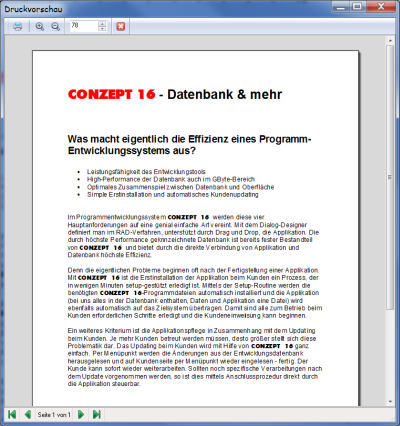 Das CtxDocEdit dient zur Anzeige und Bearbeitung von verschiedenen Dokument-Formaten, wie bereits im Artikel Textverarbeitung leichtgemacht vorgestellt wurde. Nun gibt es für das CtxDocEdit neben der Druckfunktion keine mitgelieferte Druckvorschau. In diesem Artikel möchte ich Ihnen die Möglichkeiten zeigen, eine eigene Druckvorschau mithilfe von CONZEPT 16 zu realisieren.