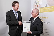 Dr. Oliver Grün, Präsident des Bundesverbands IT-Mittelstand (BITMi), überreicht das Gütesiegel im Rahmen einer Abendveranstaltung in Hannover an Edwin E. Heinecke Vorstandsvorsitzender der vectorsoft AG.