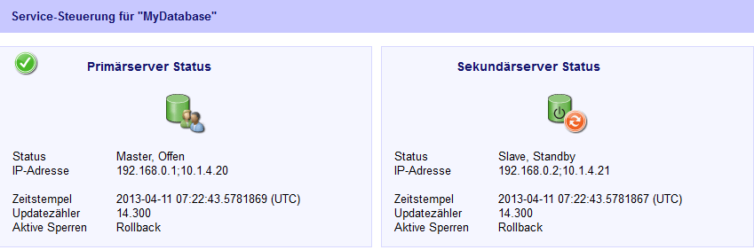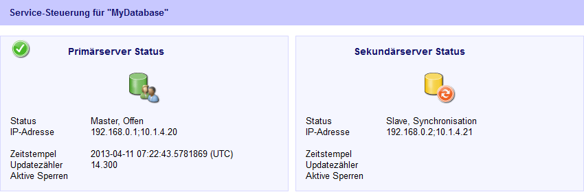 Nach erfolgter Synchronisation befindet sich die Datenbank des Sekundärservers im „Standby„-Modus.