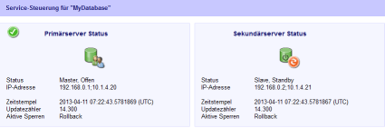 Um eine Datenbank für den Hot-Standby-Betrieb vorzubereiten, sind über die Web-Administration auf dem Primär- und dem Sekundärserver die notwendigen Einstellungen vorzunehmen.