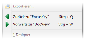 Über den Helptip der Toolbarbuttons bzw. die Caption der Menüpunkte ist ersichtlich, welches Dokument mit Zurück und Vorwärts angesprungen wird. Für Zurück ist das Tastaturkürzel <Strg> + <Q> und für Vorwärts <Strg> + <W> vorgesehen.