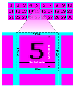 Der Vorteil der Kachelgrafik liegt darin, dass diese (z.B. pro Frame-Objekt) nur einmal geladen werden muss und danach von allen untergeordneten Objekten verwendet werden kann.