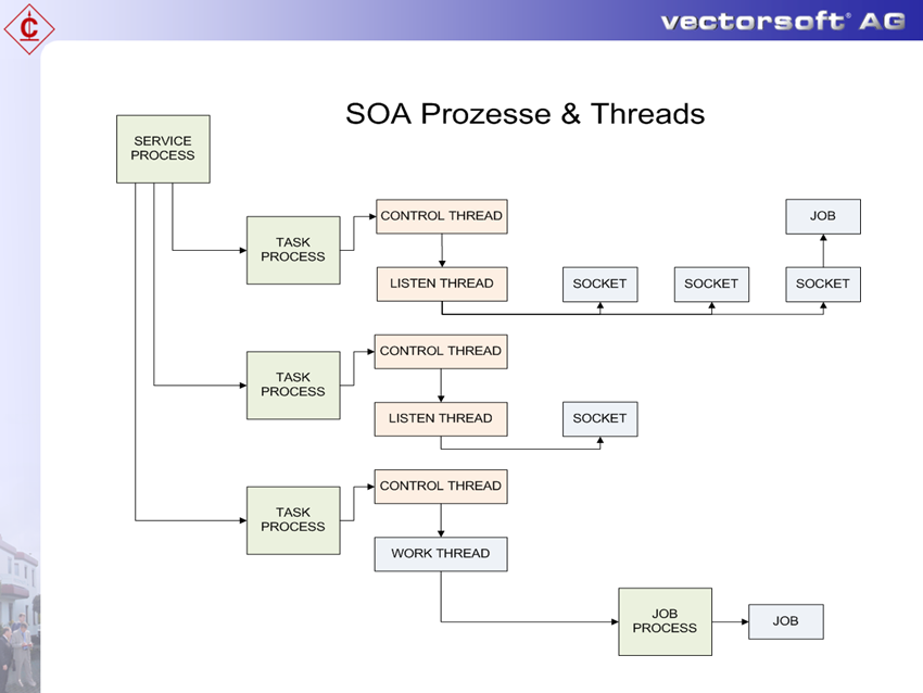 Um den Wissensstand der Teilnehmer auf eine gemeinsame Basis zu bringen, startete er zunächst mit allgemeinen Grundlagen rund um den SOA-Service. Neben der Funktionsweise des SOA-Services im Bezug auf Prozesse und Threads, gehörten hierzu die wichtigsten Konfigurations-Parameter und der Vorgang des Verbindungsaufbaus.