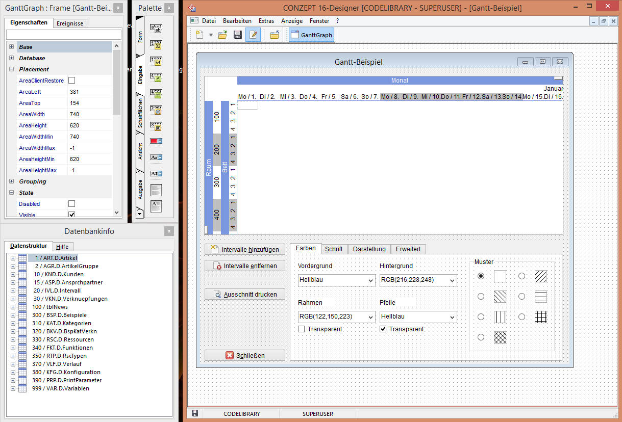 Der Designer präsentiert sich als MDI-Anwendung und besitzt einen ähnlichen Aufbau wie der CONZEPT 16-Editor. Durch die neue Darstellung ergeben sich folgende Vorteile: