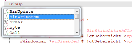 Die Liste der Autovervollständigung zeigt nun deutlicher, ob es sich um eine Funktion, Konstante oder Schlüsselwort handelt.