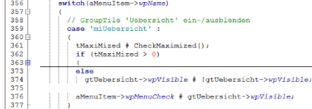 Ermöglicht das auf- und zuklappen zueinander gehörender Klammerpaare und deren dazwischenliegendem Inhalt, sowie ganze Funktionen.