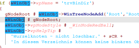 Worte, die mehrfach in einer Prozedur hervorkommen, werden entsprechend hervorgehoben.